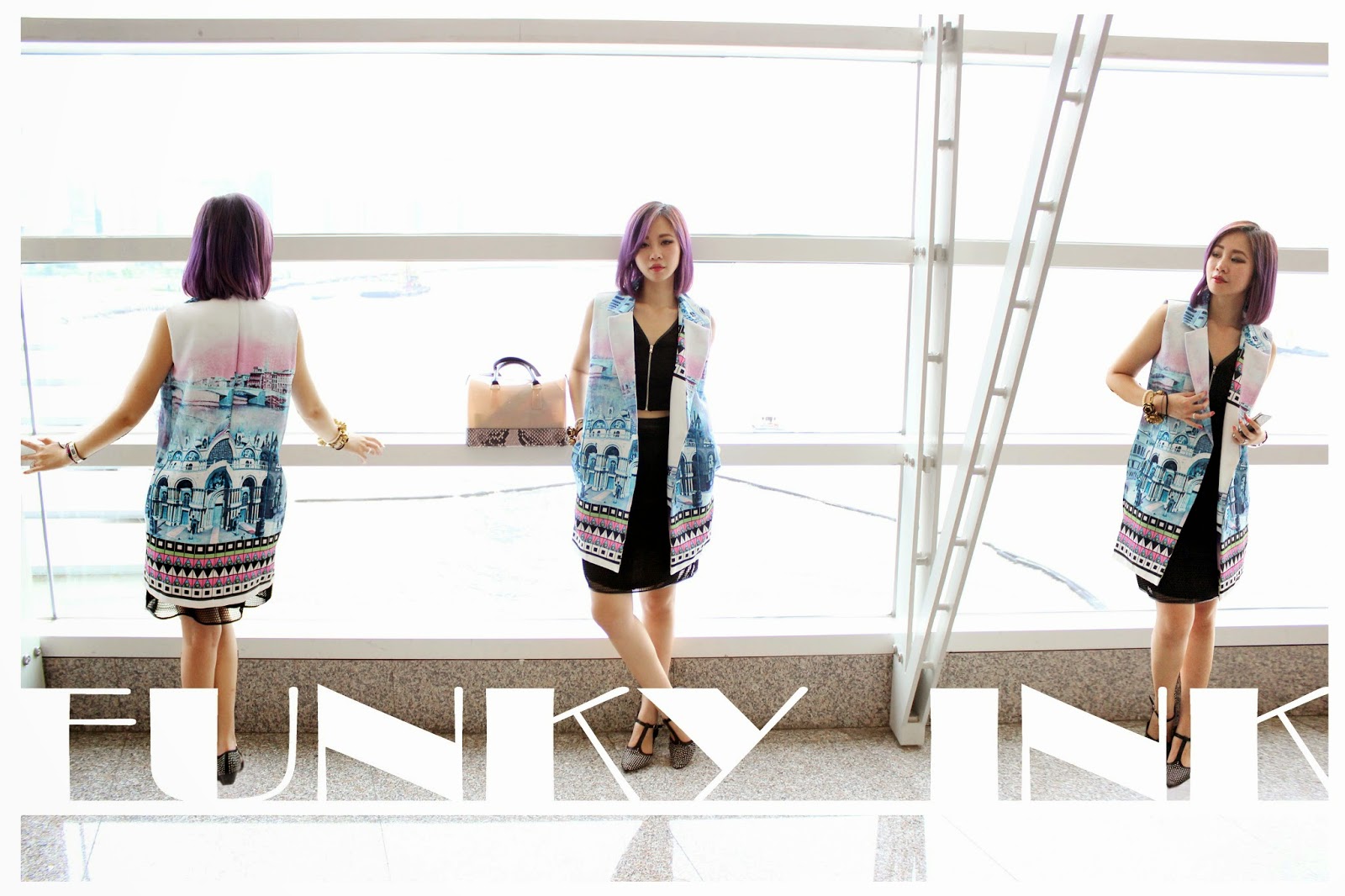 ''Cool,有形''不只係形容全黑的配合,今天的我配上紫羅蘭色的髮式及泡泡糖色系的外套令黑色的套裝跳脫起來,多了一份形格外還有多點少女味於超酷中有出來!!